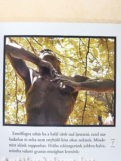 Az ember az élet dolgairól bárhol szívesen beszélget, de a halálról inkább csak egy temető meglátogatásakor gondolkodik el. A sírkertek csendje, nyugalma, a síremlékek megható időtlensége elfogadhatóbbá teszi az elkerülhetetlen elmúlást. Lelkünknek jót tenne néha az élet megszűnéséről is elbeszélgetni valakivel. Ehhez próbál társul szegődni Michel de Montaigne, az 1572-ben írt Essai (I.) című bölcselkedésének XIX. fejezetével (Que philosopher c'est apprendre á mourir). "Társalkodó" könyvünk számára az 1922-ben megjelent Kner-kiadványokból kölcsönöztük Lehel István magyar fordítását, Faragó István felvételeivel pedig budapesti temetők megkövült nyugalmát.