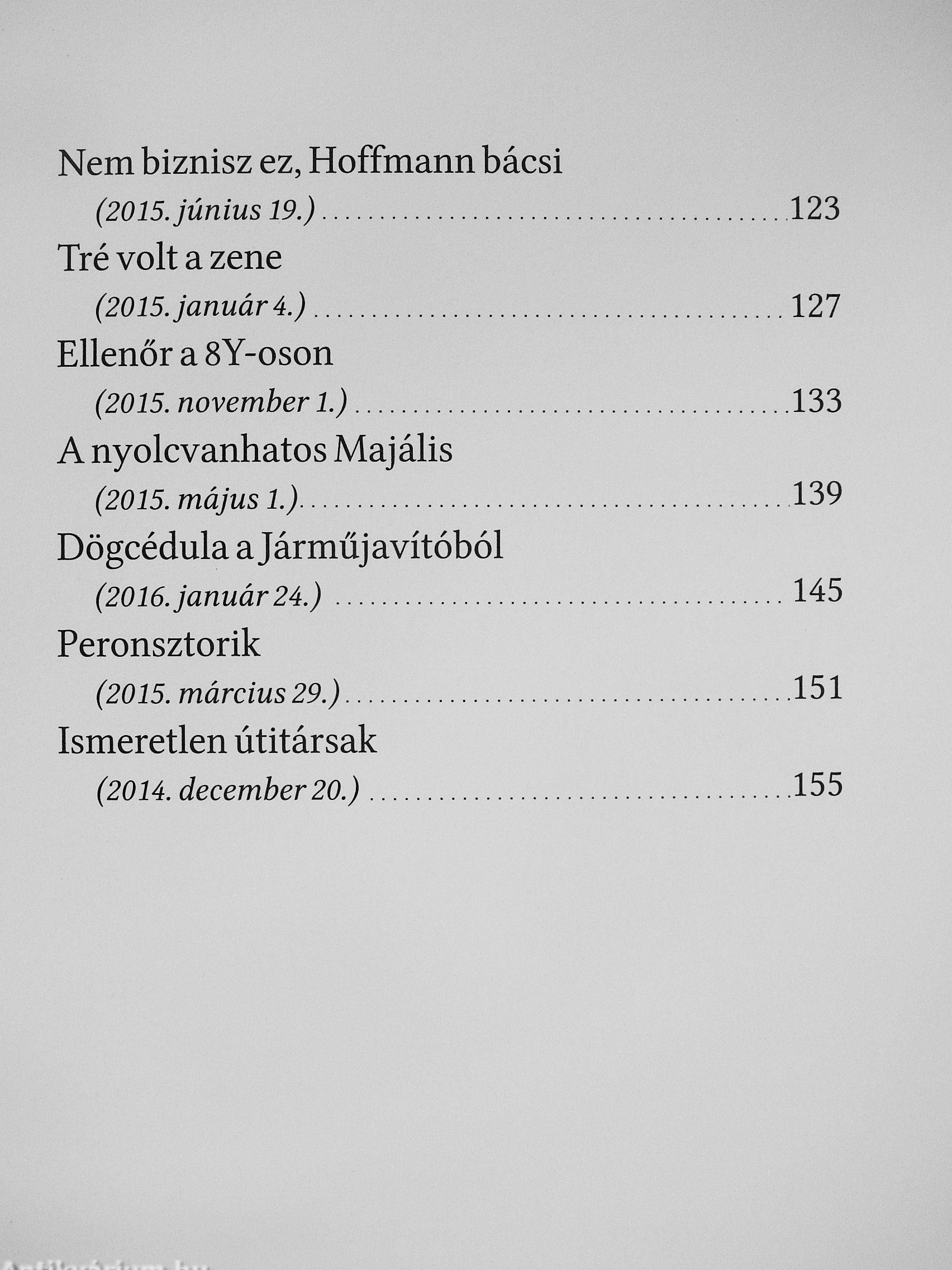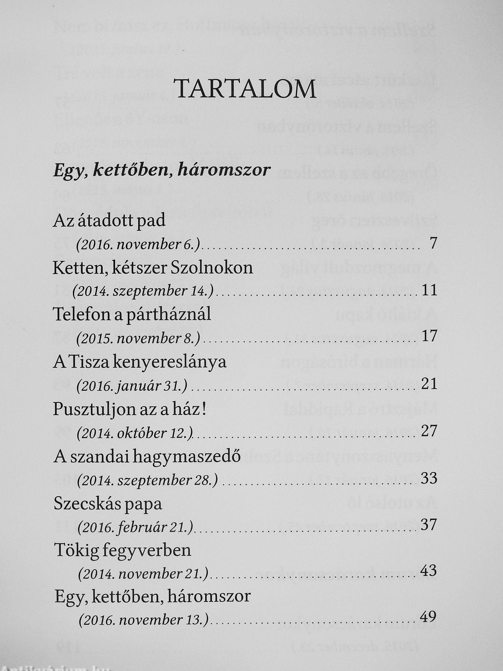 Huszonhét történet, amelyek mind Szolnokról szólnak. Talán mert olyanok, mint az igazi mesék, hiszen mindegyiknek van valami köze a valósághoz. Ebben az esetben a városhoz és lakóihoz. Az egyikben egy ma is álló, a másikban egy már rég lebontott szolnoki ház tűnik fel, a harmadik megtörtént eseményekre, a negyedik pedig valós személyekre emlékeztet. Ezért nem mondjuk, hogy a könyvben található történetek és szereplőik bárminemű hasonlósága valódi személyekkel és eseményekkel csak a véletlen műve.
