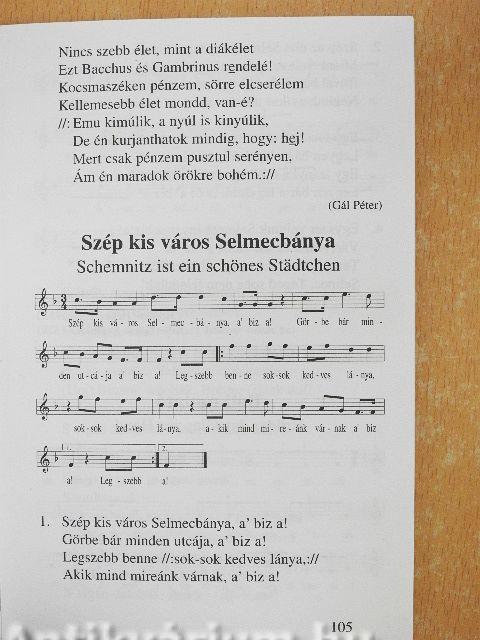Ebből az indíttatásból érthető az is, hogy a Selmecen legrégebben kialakult diákhagyományok és nóták is németnyelvűek voltak. A nemcsak Magyarországról, hanem sokszor messzeföldről jött németajkú hallgatók sok német hagyományt is hoztak Selmecre. Azonban ezek nem egyszerű átvételek voltak, hanem olyan sajátos egységben "selmeciesedtek" az ott keletkezőkkel, váltak a diákok mindennapi életének kiegészítőjévé, amilyen sehol máshol az országban nem alakult ki. Vissza