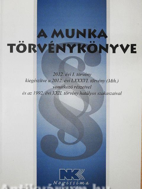 2012. évi I. törvény A Munka Törvénykönyvéről kiegészítve a 2012. évi LXXXVI: törvény (Mth.) vonatkozó részeivel és az 1992. évi XXII. törvény hatályos szakaszaival