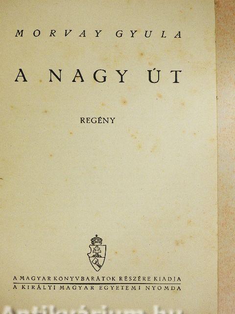 A NAGY ÚT az élet göröngyös és kanyargós útja, ezt járja végig Böse János szolgalegény. Hajtja a más marháit, szántja a más földjét s az élet örömeiből csak elvétve hull neki valami, azért is meg kell fizetnie. Egy napon a szép Veron is rááll az ő útjára. Szépen virágzó szerelmüket kérlelhetetlenül hervasztgatja a sok reménytelen küszködés. Böse János ingadozik, botladozik, de soha meg nem roppan. Nem is lázad sorsa ellen: bírja és tűri, mert a nagy úton elfárad ugyan a szegény ember, de onnan is csak az égbe lát.
