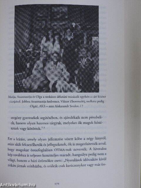 HE LEN RAPPAPORT, a jeles életrajzíró az eddigi leghitelesebb beszámolót tárja elénk e könyvében Olga, Tatyjana, Marija és Anasztaszija nagyhercegnőkről. A lányok saját leveleiből és naplóiból merített, eleven képet fest életükről a Románov-dinasztia végnapjaiban. Úgyszólván ez az első alkalom, hogy végigkövethetjük életútjukat a roppant kiváltságos, mégis erősen zárt világban, a jórészt egyszerűen eltöltött gyermekévektől kezdve a fiatal nővé érlelődésig, miközben megismerkedünk első romantikus szerelmeikkel, reményeikkel és álmaikkal, legvégül a forradalom és rettenetes következményei okozta traumával.