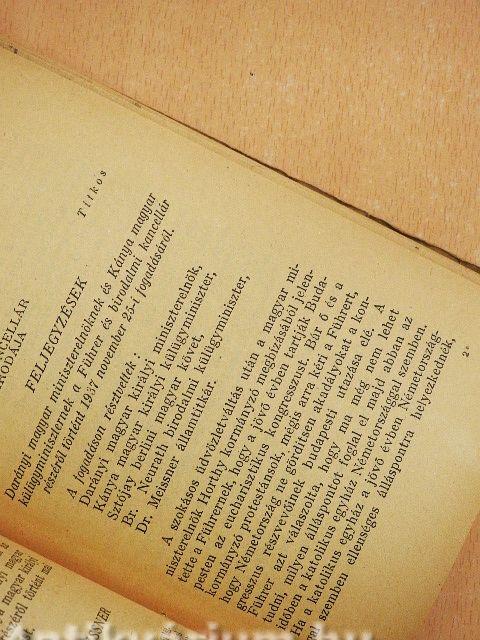 | Feljegyzés Hitlernek és a külügyminiszternek a magyar kérdésre vonatkozó megbeszéléséről. Berlin, 1938 március 25. | 38 |