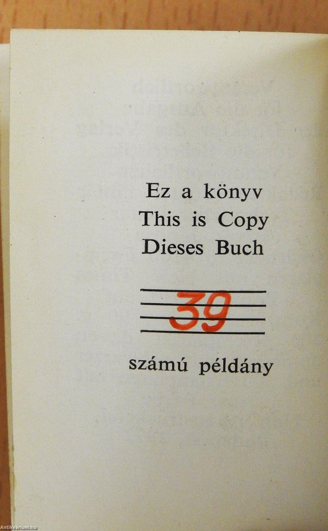 | Megjegyzés: | Számozott kiadás. Számozás színe: Piros Kiadott példányszám: Készült 4100 példányban, ebből 500 példány fekete, 500 példány piros színnel számozva. Könyvtervező: Janka Gyula Betűtípus: 6 pontos New Times Papír minősége: 90 g-os műnyomó papíron Nyomda: Egyetemi Nyomda Fekete-fehér fotókkal illusztrálva. A könyv pontos mérete: 42 x 58 mm. |
