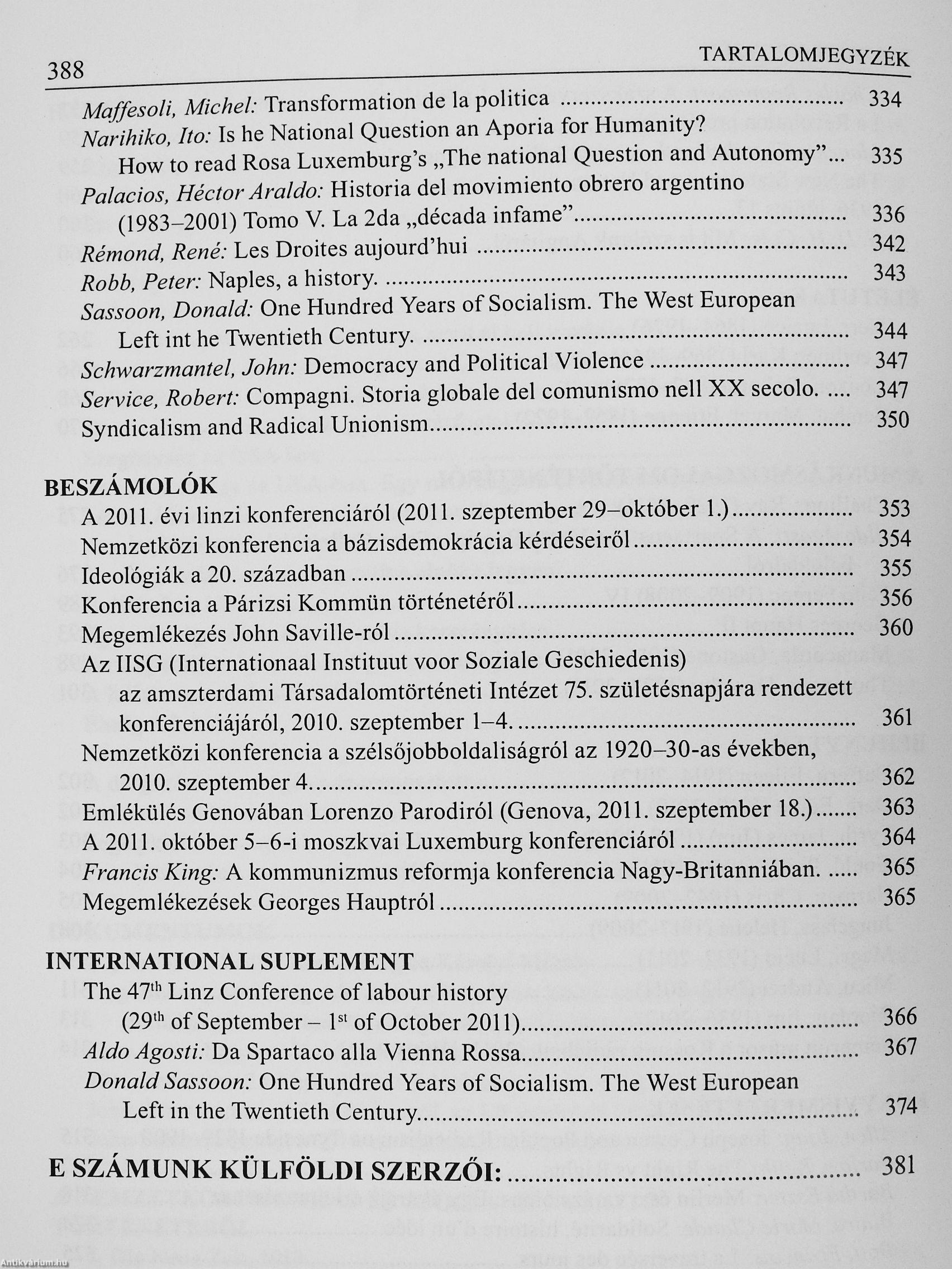 | Sorozatcím: | A nemzetközi munkásmozgalom történetéből |