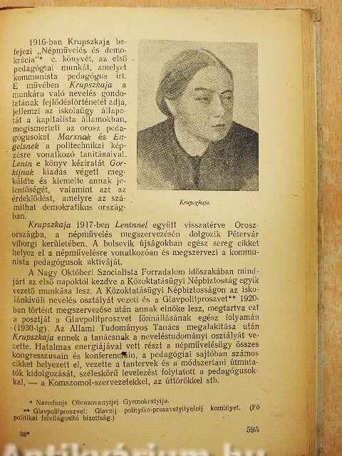 | A legjelentősebb szovjet pedagógusok: N. K. Krupszkaja, A. Sz. Makarenko | 594 |