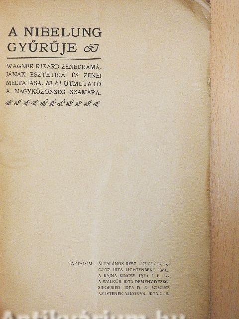 Jelen tanulmánynak czélja a világirodalom egyik legnagyszerűbb konczepcziójú művének ismertetése irodalmi és zenei szempontból. Minden műalkotás tanulmányozása két különböző irányban való vizsgálatot télelez fel s igy e sorok is két izben más-más szempontból teszik vizsgálat tárgyává Wagner zenedrámáját és pedig: egészében és részleteiben.