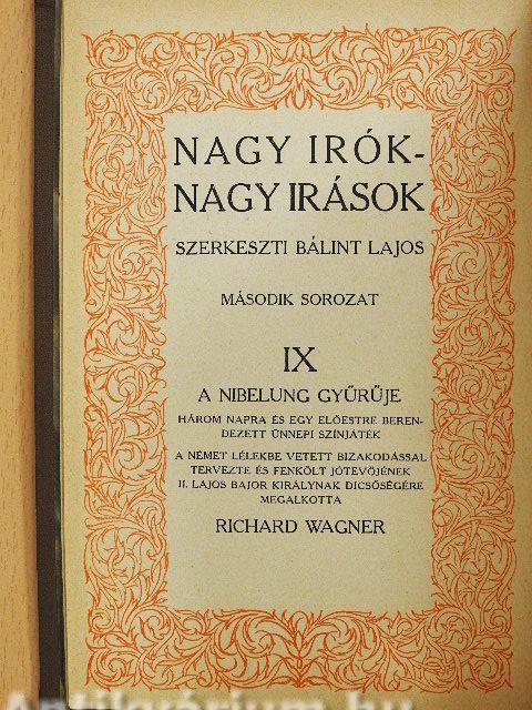 | Megjegyzés: | A német lélekbe vetett bizakodással tervezte és fenkölt jótevőjének II. Lajos bajor királynak dicsőségére megalkotta Richard Wagner. Második sorozat. Számozott kiadás. Nyomtatta Világosság könyvnyomda rt. |