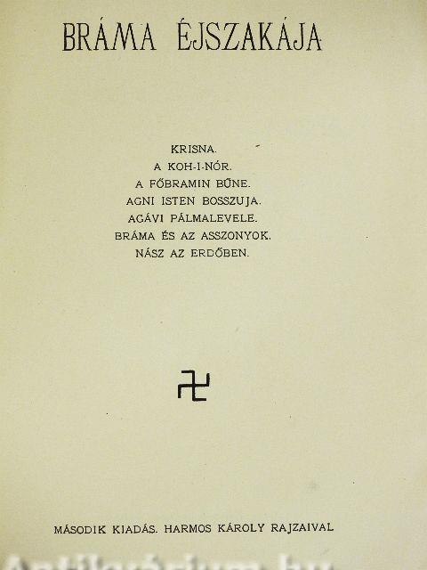 | Megjegyzés: | Második kiadás. Harmos Károly fekete-fehér rajzaival illusztrált. A címképen Gajátri istennő szerepel. Légrády Testvérek nyomása, Budapest. |