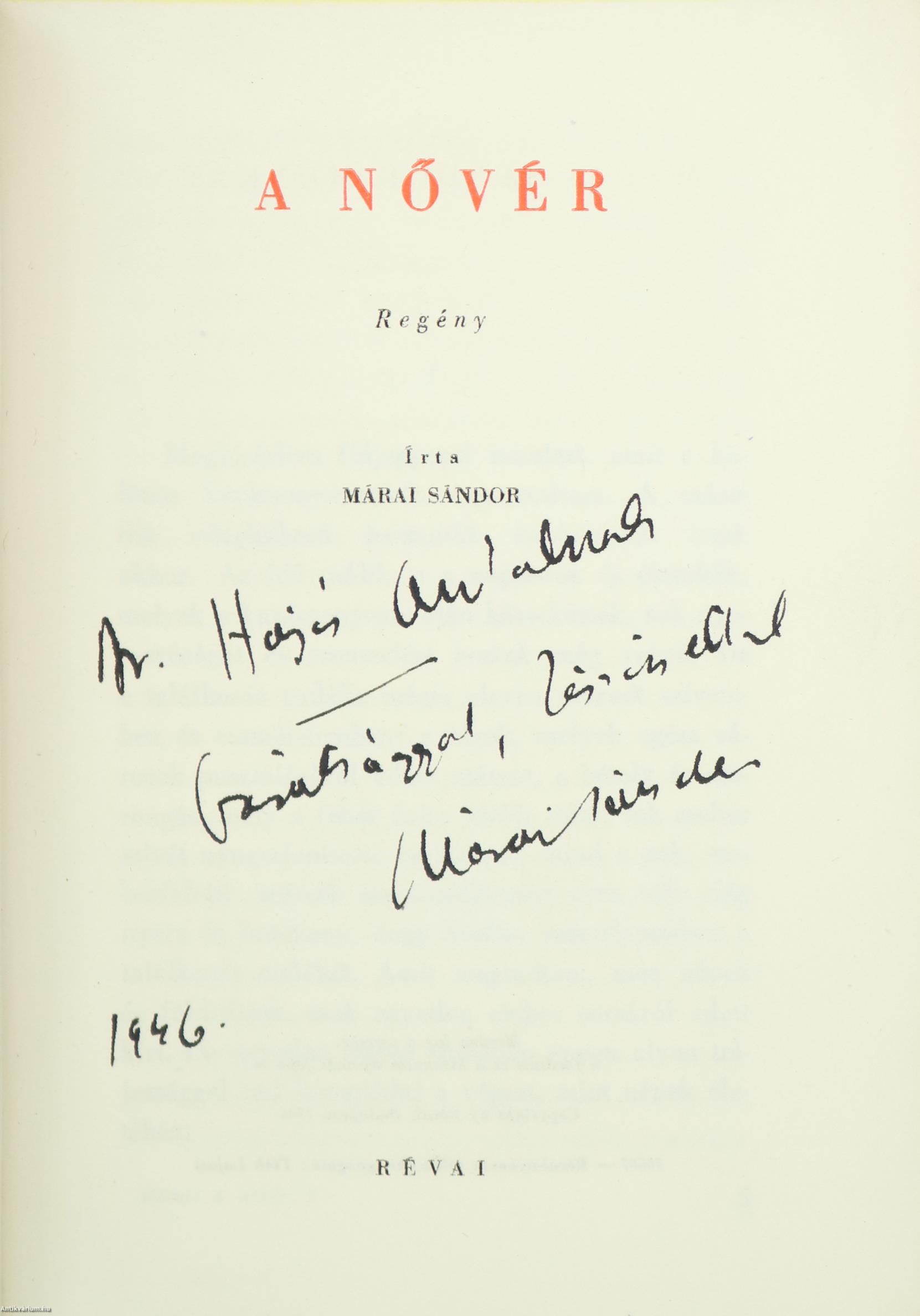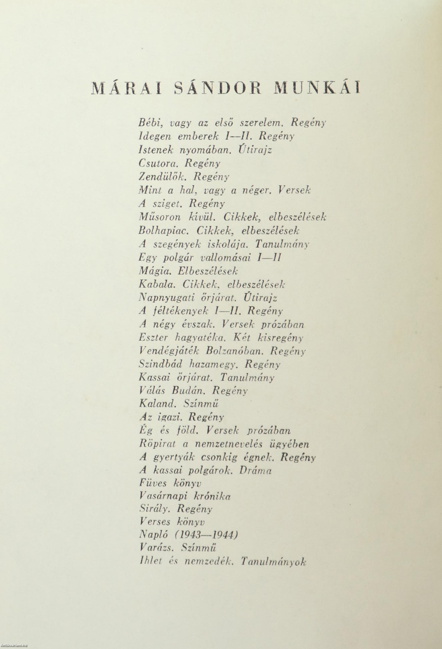 | Sorozatcím: | Márai Sándor munkái |