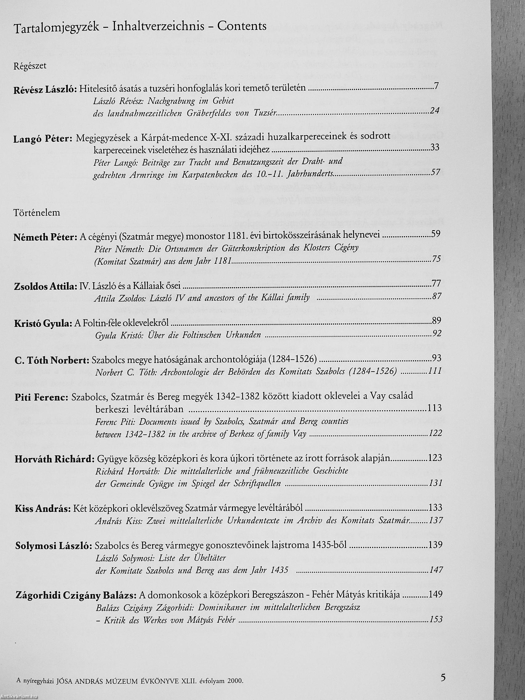 A Nyíregyházi Jósa András Múzeum évkönyve XLII. A Nyíregyházi Jósa András Múzeum évkönyve XLII. A Nyíregyházi Jósa András Múzeum évkönyve XLII.