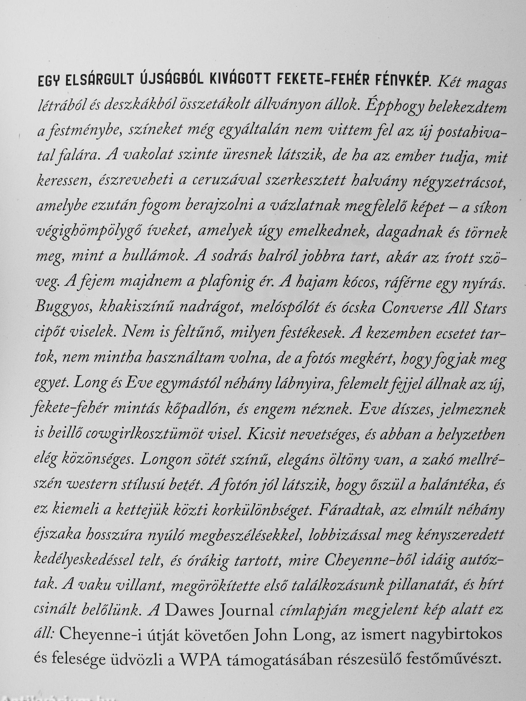 A regény egyszerre egy szerelmi háromszög és egy ellopott Renoir-festmény utáni nyomozás története, a korabeli Amerika aprólékos bemutatása és a hatalmas ország ezerféle lakójának tablója - de legfőképpen igazi sodró lendületű amerikai nagyregény.