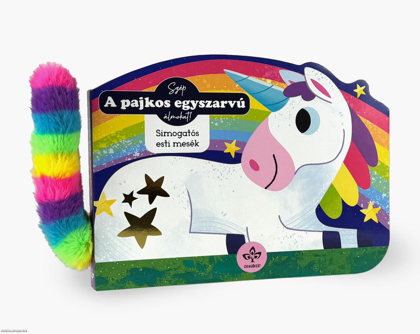 Kedves, megnyugtató esti mese a gyerekek egyik kedvenc csodalényéről, a kis unikornisról, aki csak játszani szeretne napnyugtáig. A simogatható plüss kellemes érzéssel tölti el a mesét hallgató gyereket, szűnik a napi stressz, az érintés jólesően lenyugtat. Ismerős a gyerekes szülőnek a ,,Nem akarok lefeküdni!" tiltakozás. A kicsik még nem érzékelik az idő múlását, ezért az esti ceremóniákkal, a következetesen végig vitt rutinnal rászoktathatjuk, hogy a pizsamaosztás és a mesélés után alvás következik. Természetes, hogy lenyugtatás közben ölbe vesszük vagy simogatjuk a gyereket, és ha szép csendes lefolyású a neki szánt történet, no meg van simogatható plüss is hozzá, sikeres lesz az elalvás. Ehhez nyújt segítséget a kis egyszarvú története, akiben magára ismerhet a gyerek. Az érintés, simogatás gyógyító erejű, a szülő szava védettséget, jóleső megnyugvást hoz. A lapozó fejleszti a szókincset, a történet helyszínei megismertetik a gyereket a világ sokszínűségével, és meseolvasás közben javul a figyelme, koncentrációja, memóriája.