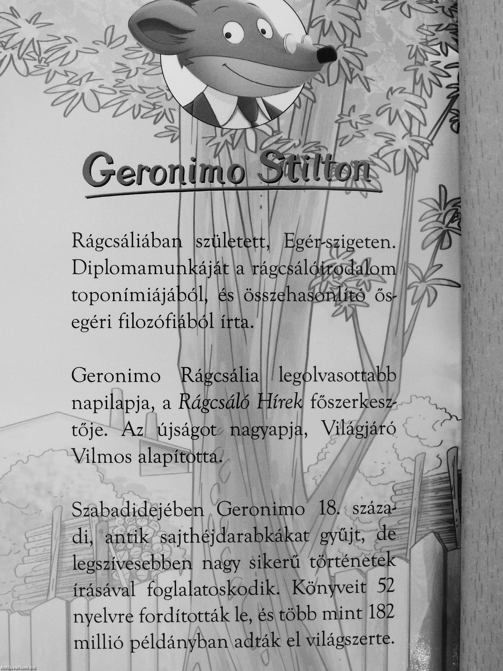 Szabadidejében Geronimo 18. száza-^ di, antik sajthéjdarabkákat gyújt, de legszívesebben nagy sikerű történetejc"*^-^ írásával foglalatoskodik. Könyveit 52 nyelvre fordították le, és több mint 182 millió példányban adták el világszerte.