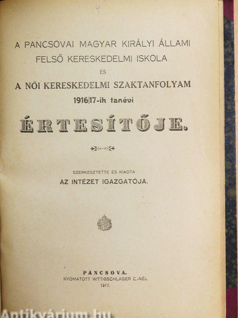 A pancsovai magyar királyi állami felső kereskedelmi iskola 1913/14-1914/15-ik tanévi értesítője/A pancsovai magyar királyi állami felső kereskedelmi iskola és a női kereskedelmi szaktanfolyam 1915/16-1916/17-ik tanévi értesítője