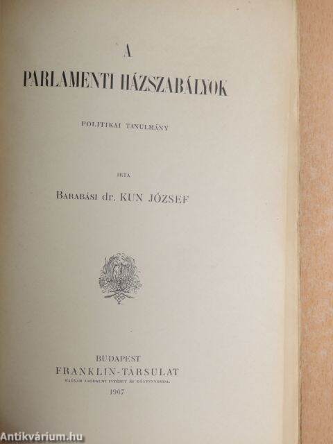Kiadó: Franklin-Társulat Magyar Irodalmi Intézet és Könyvnyomda