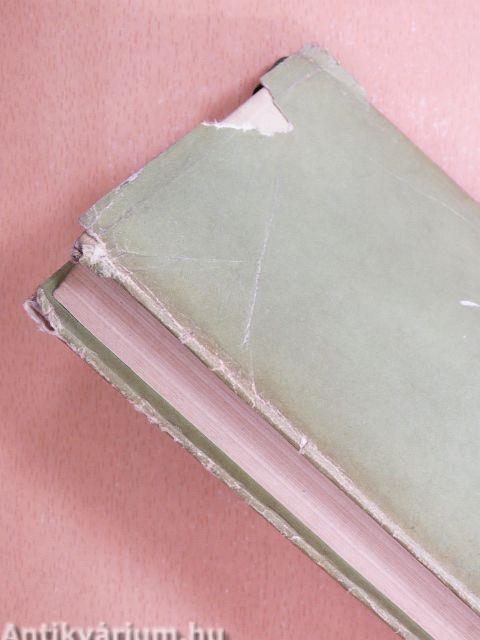 A védőborító sérült, kissé kopott, enyhén töredezett. A kötés megtört, néhány lap elszíneződött.