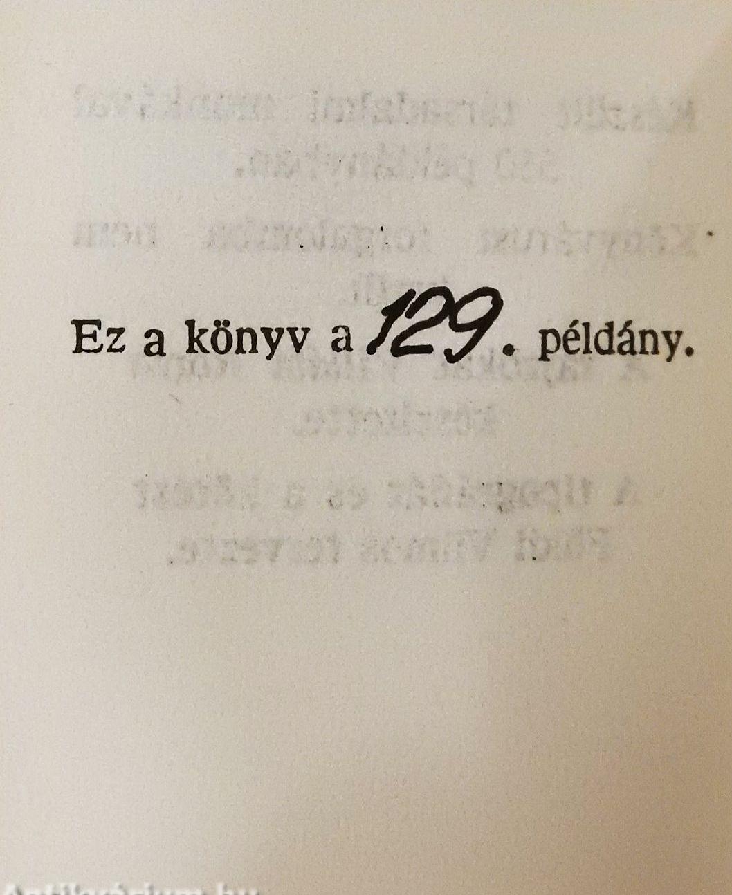| Megjegyzés: | Számozott kiadás. Számozás színe: Fekete Kiadott példányszám: 550 Könyvtervező: Földi Vilmos Egyszínű illusztrációkkal. Könyvesbolti forgalomba nem került. A könyv pontos mérete: 37 x 47 mm. |