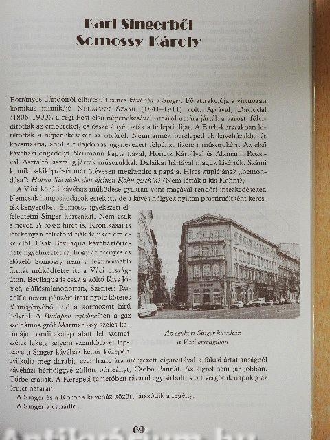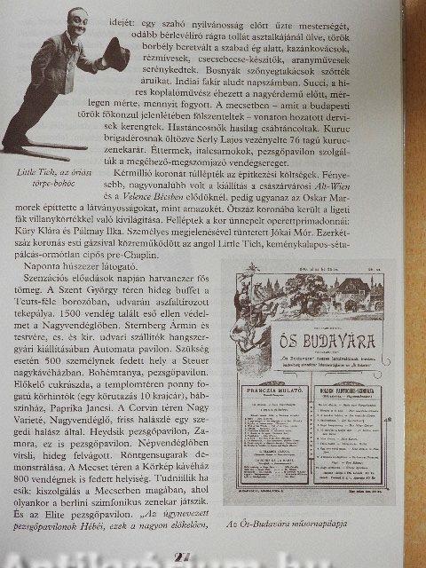 És közben kibontakozik az éppen csak Budapestté lett főváros. A boldog-boldogtalan békeidők Pestje, amikor még a mai Belvárosig ért a Kerepesi út, rostély utcának hívták a Gerlóczy utcát, Retek utcának a Révay utcát, Landstrassénak a váci körutat, azaz a mai Bajcsy-Zsilinszky utat. amikor könnyebb volt Könggstrasseként emlegetni a Király utcát, és Ős-Budavára a Városligetben volt, Konstantinápoly pedig a Lágymányosra hurcolkodott.