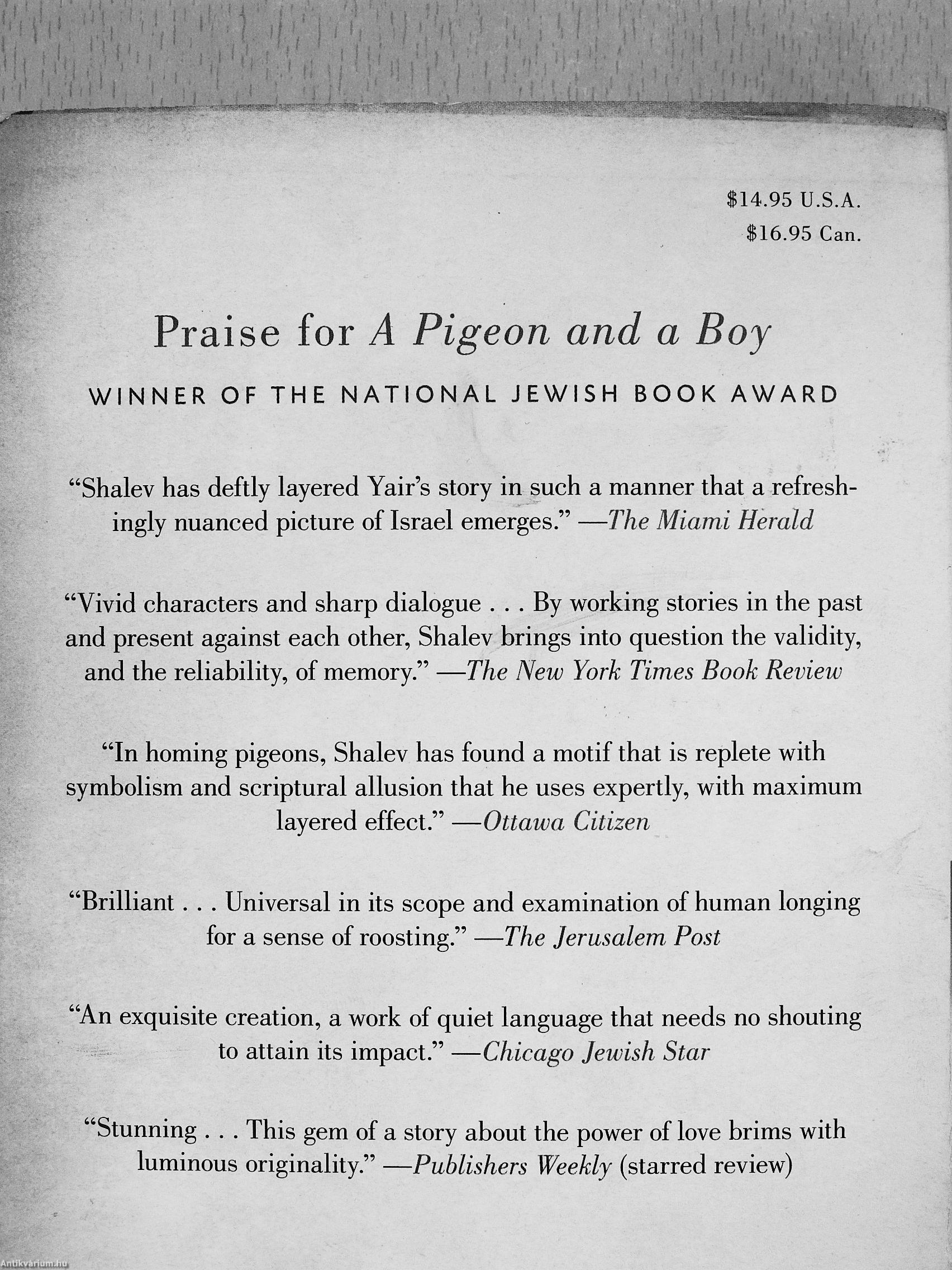 "In homing pigeons, Shalev has found a motif that is replete with symbolism and scriptural allusion that he uses expertly, with maximum layered effect." —Ottawa Citizen