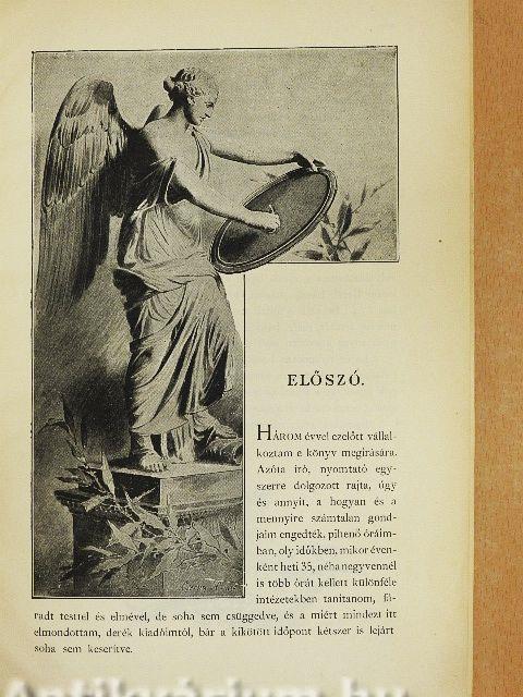 Három évvel ezelőtt vállalkoztam e könyv megírására. Azóta író, nyomtató egyszerre dolgozott rajta, úgy és annyit, a hogyan és a mennyire számtalan gondjaim engedték, pihenő óráimban, oly időkben, mikor évenként heti 35, néha negyvennél is több órát kellett különféle intézetekben tanítanom, fáradt testtel és elmével, de soha sem csüggedve, és a miért mindezt itt elmondottam, derék kiadóimtól, bár a kikötött időpont kétszer is lejárt soha sem keserítve.