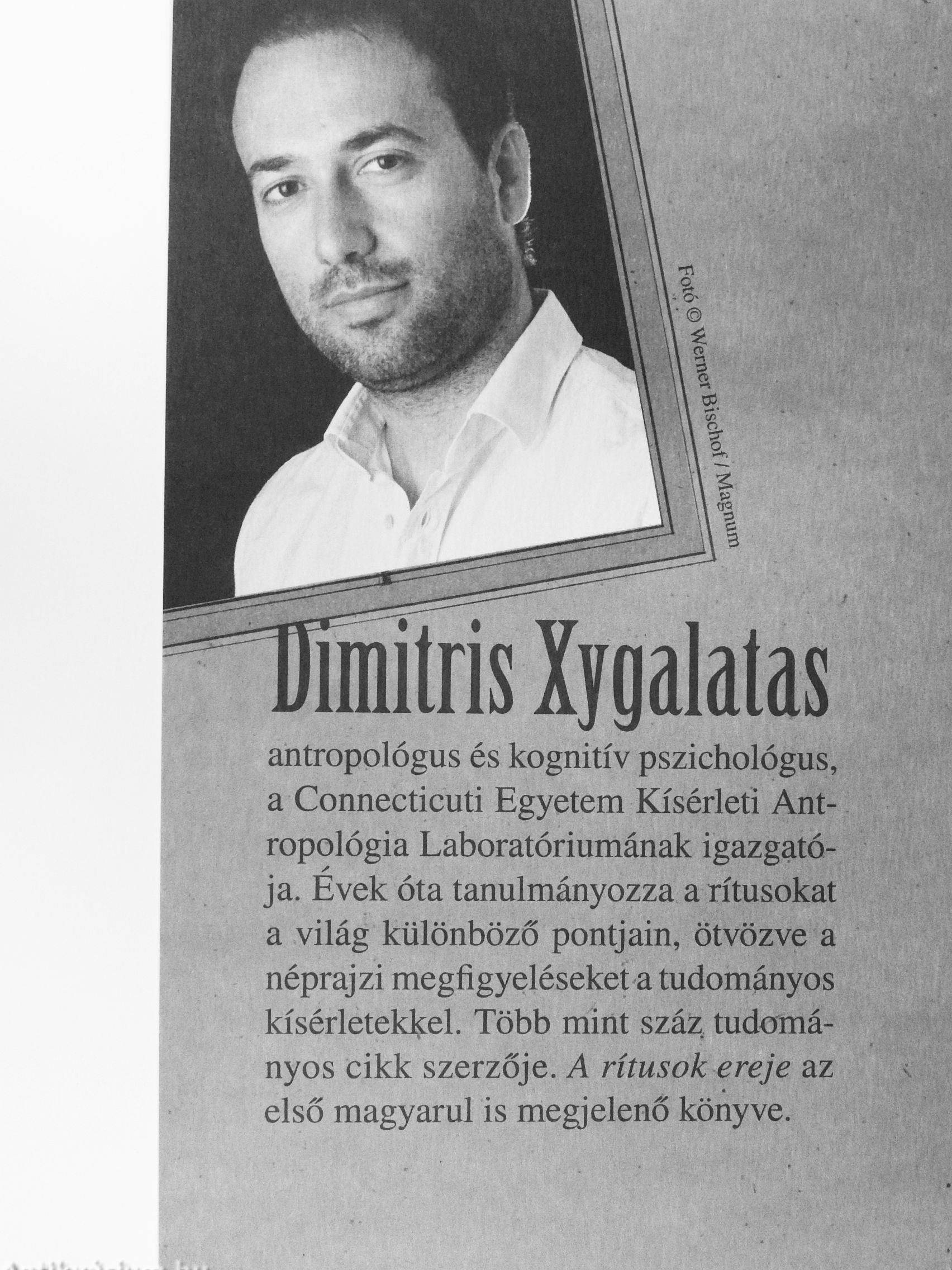 E kérdések nyomába ered Dimitris Xygalatas. Tűzön járáson és kínzó zarándoklatokon vett részt, hogy megismerje a legextrémebb szokásokat. Hosszú évtizedeken át tartó kutatásának összegzése €z a könyv, amelyben meghökkentő betekintést nyújt a rítusok legmélyebb rétegeibe, és feltárja azokat a finom mechanizmusokat, amelyek évezredek óta összekötnek bennünket, embereket.
