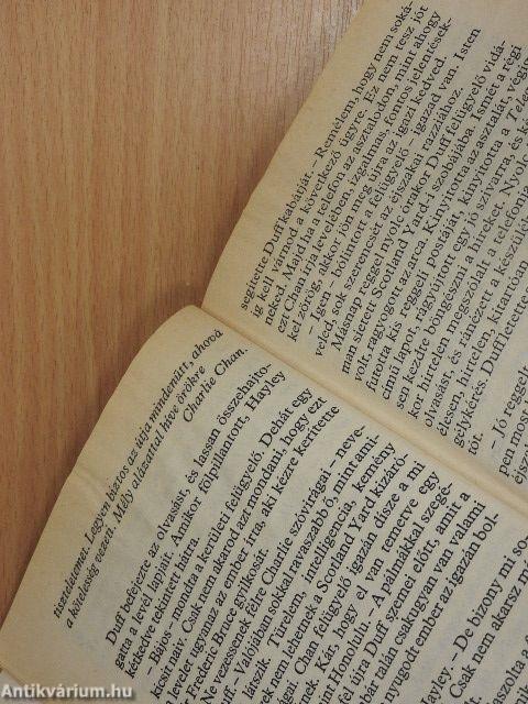 "Bekopogott a negyvenes szoba ajtaján, s egy magas, rendkívül csinos hölgy nyitott neki ajtól. Haja éppúgy, mint ruhája, aranyszínű volt, és hangja - ami most már nem telefonon hallatszott - az egykedvű felügyelőt is elragadta.