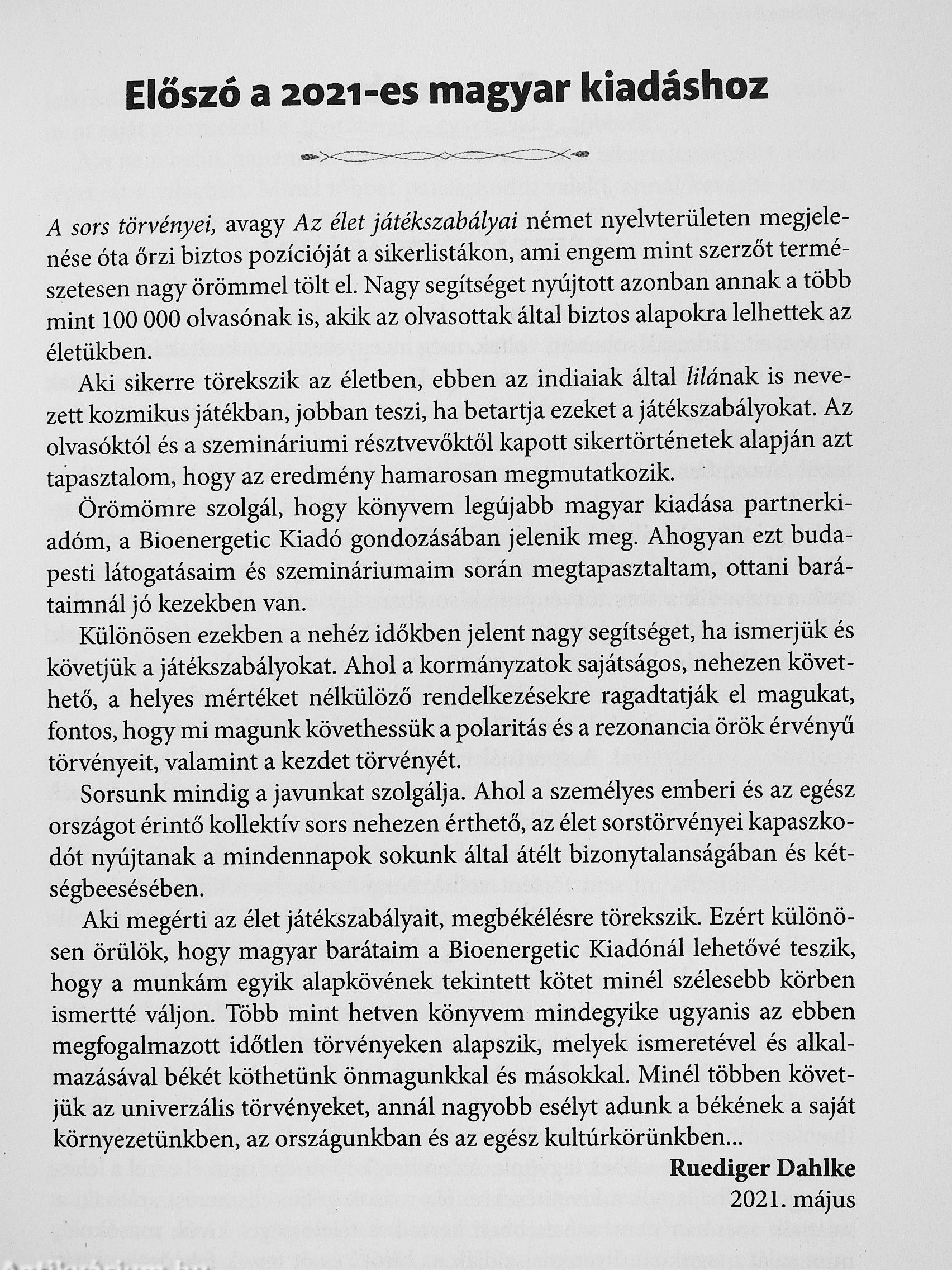 SRuediger Dahlke közel húsz évig tanulmányozta az élet két legnagyobb törvényét: a polaritás és a rezonancia vagy vonzás időtlen törvényét. E két központi törvény mellett számos kisebb szabályszerűség és működési elv határozza meg életünk alakulását, például a különböző tudati me-^T iB létrehozó szokásaink, hagyományaink. Ez a könyv