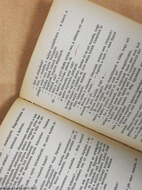 Ez a szokatlanul hosszú csend idegesítette. Az utóbbi napok iszonyú zaja után - férfiak, asszonyok, gyerekek kiáltoztak, sírtak, gépek, ágyúk recsegtek a város pokoli hangzavarában - már-már a csönd is kellemetlen volt, idegesítő. Fülöpné körülnézett, vajjon észrevette-e valaki, hogy kezét a mocskos, füstös falba törölte, de senki nem figyelt rá. Vajon - gondolta - mit szólt volna Kondóiné méltóságos asszony, ha vendégei előtt a falba törlöm a kezemet? Az ötlet most roppantul tetszett neki. Hirtelen maga elé képzelte az asszonyt, amint rózsaszín, virágmintás ruhájában vendégeit fogadja. Meghajlás és kézcsók, micsoda ostobaság!
