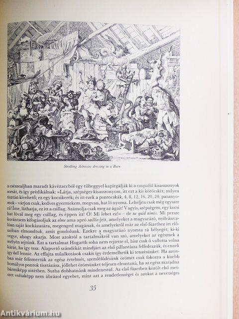Két, párját ritkító lángelme kereszttüzében fog melegedhetni, kedves Olvasónk, ha végére jár ennek a könyvnek. Hangsúlyozzuk: ha végére jár. Mert ha csupán belelapoz, hogy Hogarth metszeteiben gyönyörködjék, nemcsak Lichtenberg elmeélének sziporkázásától fosztja meg magát, hanem Hogarth mélyebb mondanivalójához, az ábrázolt alakok és történések sok vonással megjelenített, a komikumnak a finom humortól a vitriolosan dühödt szarkazmusig terjedő teljes arzenáljával felfegyverzett, sőt aláaknázott összefüggéseihez sem fog közelebb férkőzhetni. Ha pedig úgy olvassa Lichtenberg elménckedéseit, hogy közben szemet huny Hogarth metszően éles géniuszának szülöttei fölött, aligha messzire nem fogja távoztatni magától, kedves Olvasónk, a hirtelen felismerésnek és a lassú lemondásnak magasztos vigaszát.