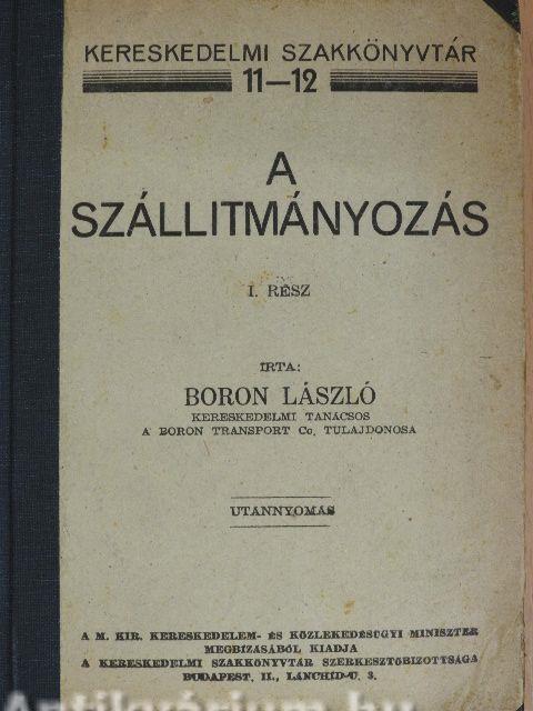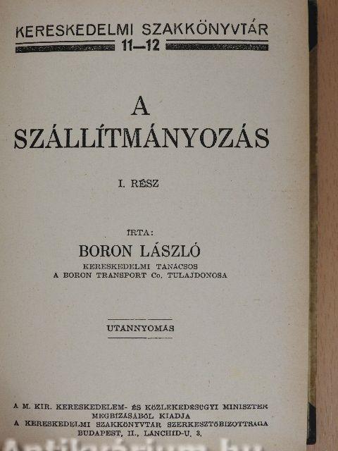 | Megjegyzés: | Töredék kötet. Írta Boron László kereskedelmi tanácsos a Boron Transport Co. tulajdonosi. Utánnyomás. Nyomtatta Pallas Irodalmi és Nyomdai Rt., Budapest. |