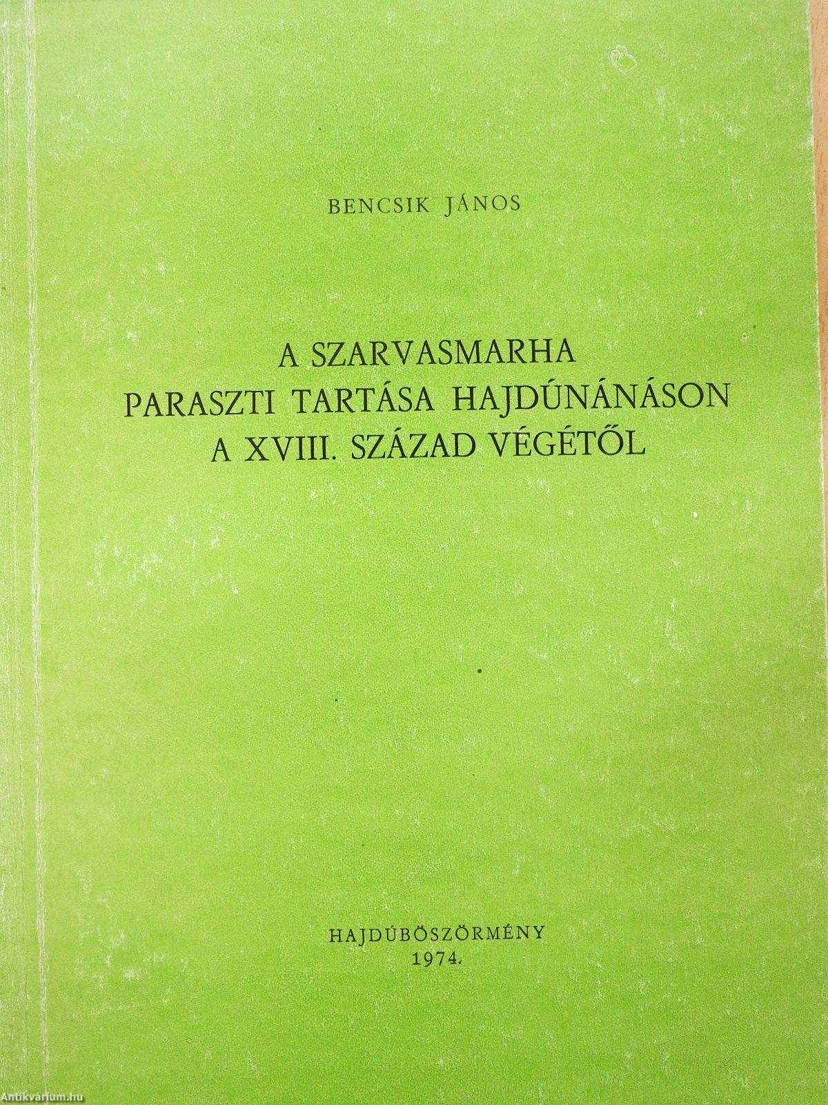 A szarvasmarha paraszti tartása Hajdúnánáson a XVIII. század végétől (dedikált példány)