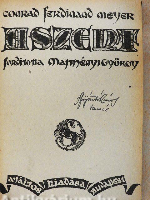 Tusakodtam is magammal, hogy Péterffy után belefogjak-e én is e munkába, holott az bizonyára elsőrangú fordítás. Amikor azonban a német szöveget a fordítással egybevetettem, mégis rászántam magam. Mert Péterffy fordítása 1890- ben, harmincegy évvel ezelőtt jelent meg a Kisfaludy Társaság kiadásában; teljesen elfogyott s egyáltalán hozzáférhetetlen. Továbbá azért is, mert C. F. Meyer művei föltétlenül megérdemlik a leggondosabb munkát. Már pedig Péterffy fordítása, úgy látszik, kissé gyorsan készült. Gazdag és fordulatos nyelve minden dicséretet megérdemel.