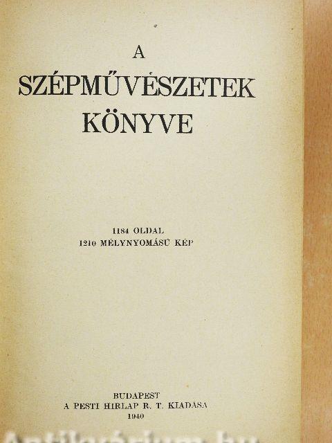 A Pesti Hirlap páratlan gazdaságú idei kedvezményében, a Szépművészetek Könyvében, a képzőművészetek teljességét nyujtja olvasóinak. Mindaz, amit a világ nagy mesterei álmodtak, alkottak, ami szépséget árasztottak a Föld lakóira, itt van ebben a könyvben.
