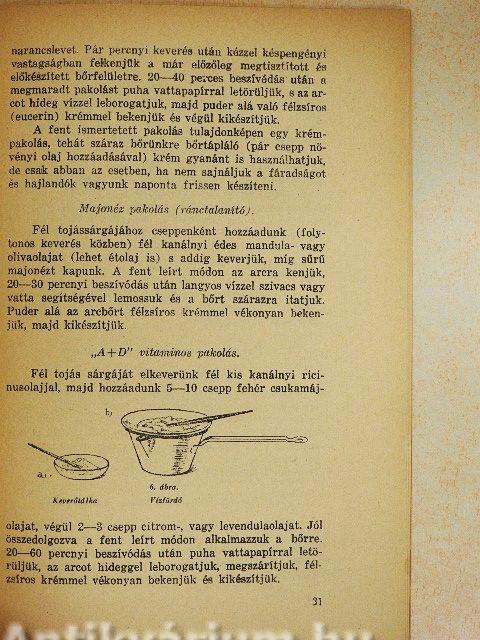 A kozmetikával még nem tartunk itt. Az arc- és testápolás a legtöbb ember szemében még ma sem egyéb, mint a női hiúság egyik ujabb bizonyítéka. Megvetendő léhaság, mely csak arra jó, hogy másnak tüntesse fel a női arcot, mint amilyen valójában, tehát csalás. Hadicsel a férfinem ellen folyó állandó harcban.