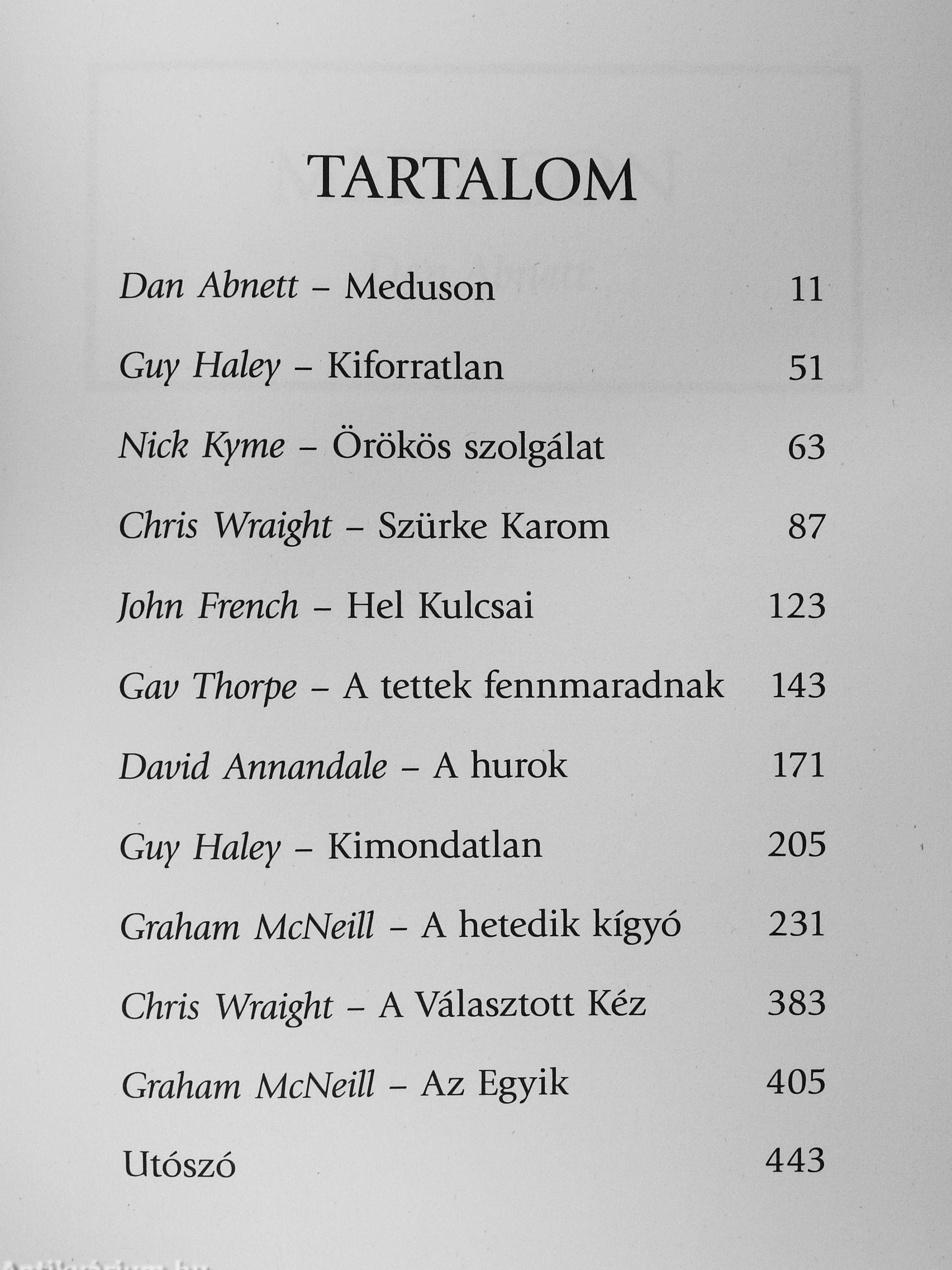 Ez a Horus Heresy antológia tíz novellát tartalmaz olyan szerzőktől, mint Dan Abnett, Chris Wraight, John French és még sokan mások. A hetedik kígyó című novellában Graham McNeill újra felkeresi a Sisypheum