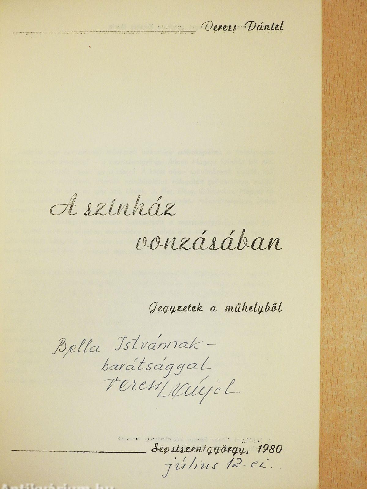 Megjegyzés: Veress Dániel szerző által dedikált példány.