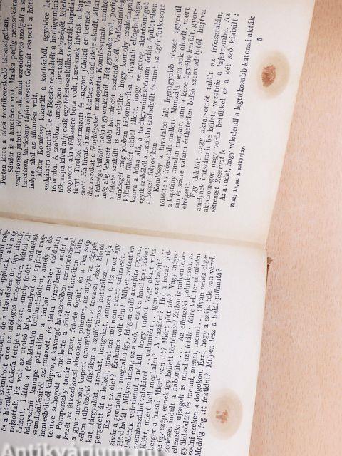 "A templom nyitott ablakán kihallatszott az orgona hangja és a szárnyaló énekszó. A templomkertben most virágzottak a vadgesztenyefák és ez a virágzás szinte egyik napról a másikra virradólag lepte el a kertet, mintha a tavaszi éjszaka óráiban apró tündérek serege érkezett volna valahonnan, fehér- és rózsaszínű, kúpalalú kis sátrakat verve sűrűn egymás mellett a lombokon. A záporfelhők mögül kibuggyanó napsütésben a bodzafák fojtó, meleg illata áttört a könnyű, édes, esőszagú levegőn.