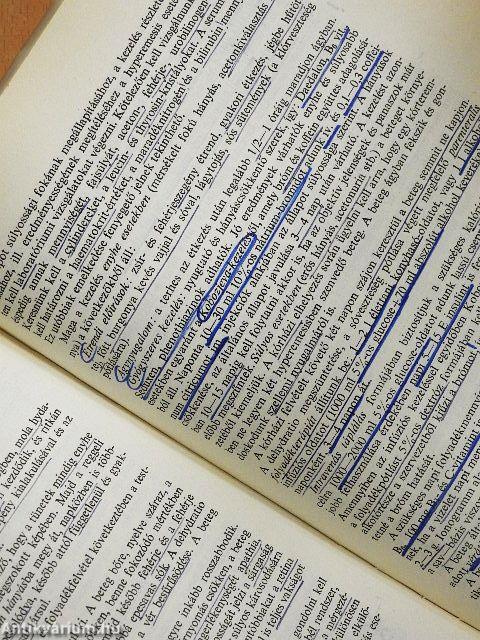 A védőborító kissé szakadozott, foltos. Több lapon aláhúzás, jelölés és bejegyzés található.