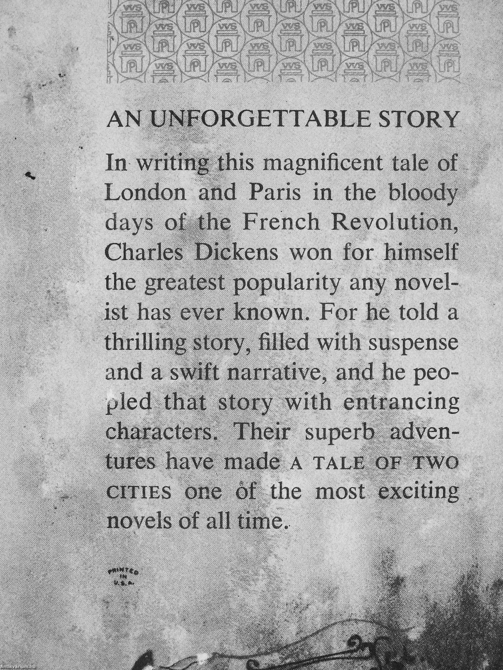 In writing this magnificent tale of London and Paris in the bloody days oL^ihe French Revolution, Charles Dickens won for himself the greatest popularity any novelist has ever known. For he told a thrilling story, filled with suspense and a swift narrative, and he peo-jjled that story with entrancing characters. Their superb, adventures have made a tale of two . CITIES one:of the most exciting ; :r novels of all time.