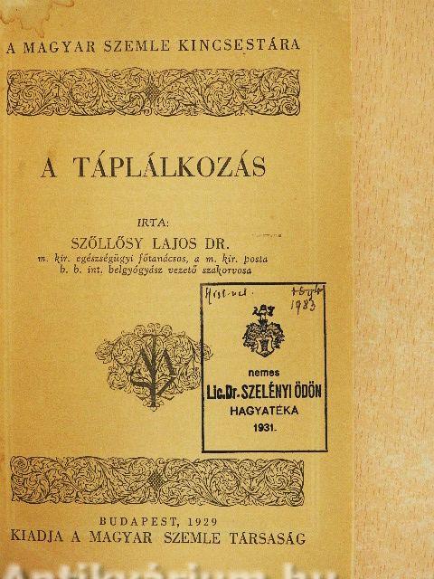 | Megjegyzés: | A Magyar Szemle Társaság tulajdonában lévő "Old Kenntonian Style" anyadúcokkal szedte és nyomta a Fővárosi Nyomda Részvénytársaság. Írta Szőllősy Lajos dr. m. kir. egészségügyi főtanácsos, a m. kir. posta b. b. int. belgyógyász vezető szakorvosa. |