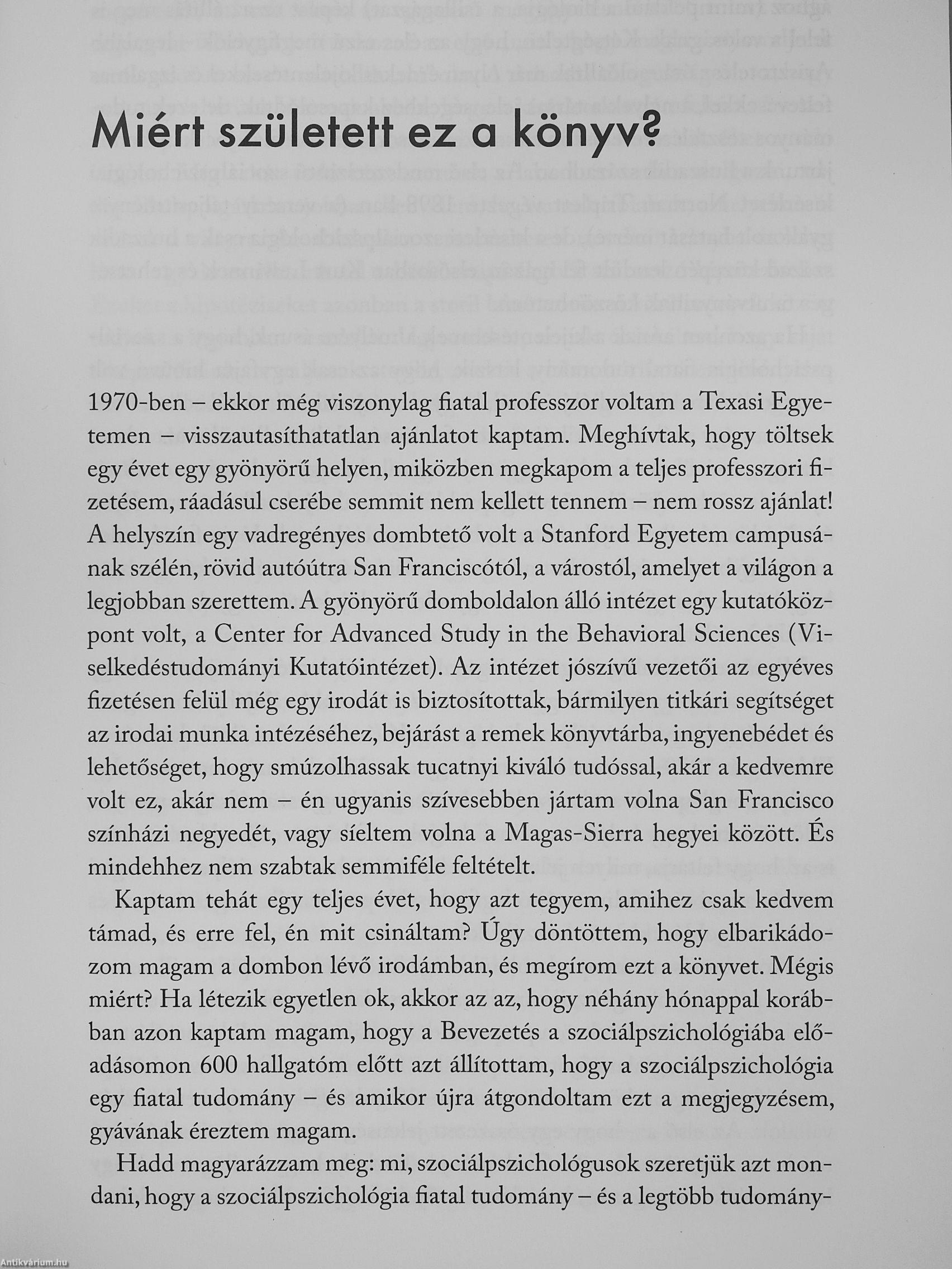 Miért gondoljuk, hogy kevésbé vagyunk elfogultak, mint mások? Hogyan válhat egy becsületes ember korrupttá? Mitől függ a bizalom? Igaz, hogy a nők kevésbé agresszívek, mint a férfiak? Mi vonz minket másokhoz, és mitől szerethetnek bennünket? Miért keresünk bűnbakokat?