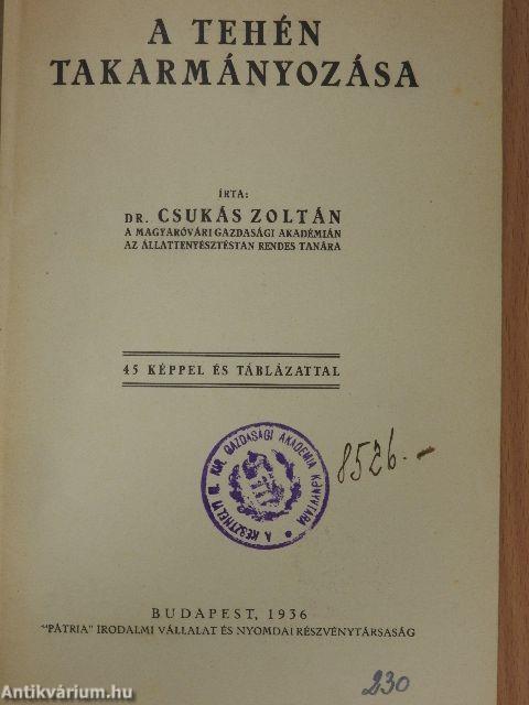 Megjegyzés: 45 fekete-fehér képpel és táblázattal. Írta Dr. Csukás Zoltán a Magyaróvári Gazdasági Akadémián az Állattenyésztéstan rendes tanára. Nyomtatta "Pátria" Irodalmi Váll. és Nyomdai R.-T., Budapest.