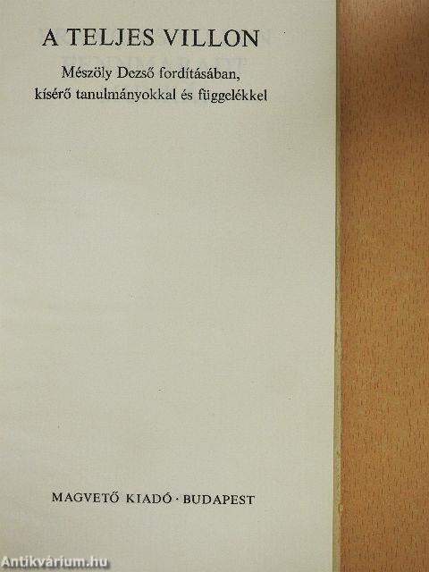 | FRANCOIS VILLON FENNMARADT MUNKÁI | |