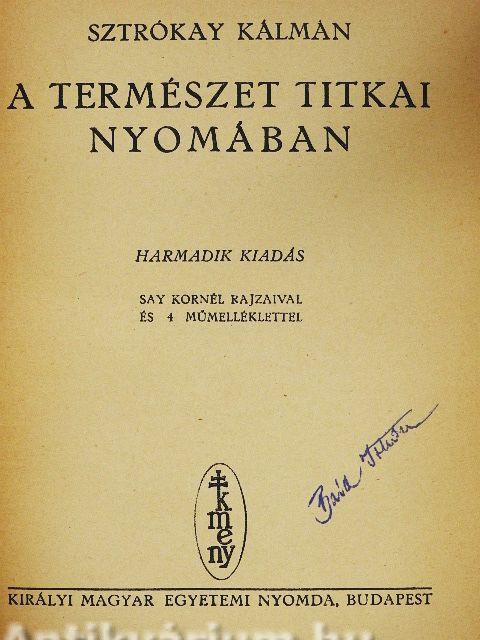 | Megjegyzés: | Harmadik kiadás. Say Kornél fekete-fehér rajzaival és 4 műmelléklettel. Nyomtatta Királyi Magyar egyetemi Nyomda. |