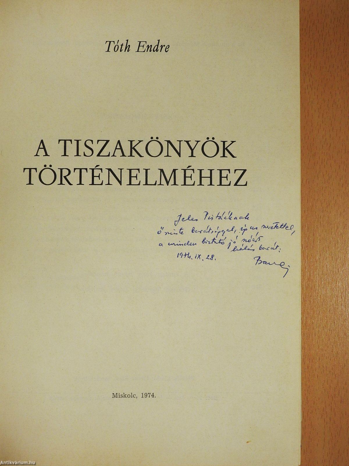 A Tiszakönyök történelméhez (dedikált példány)