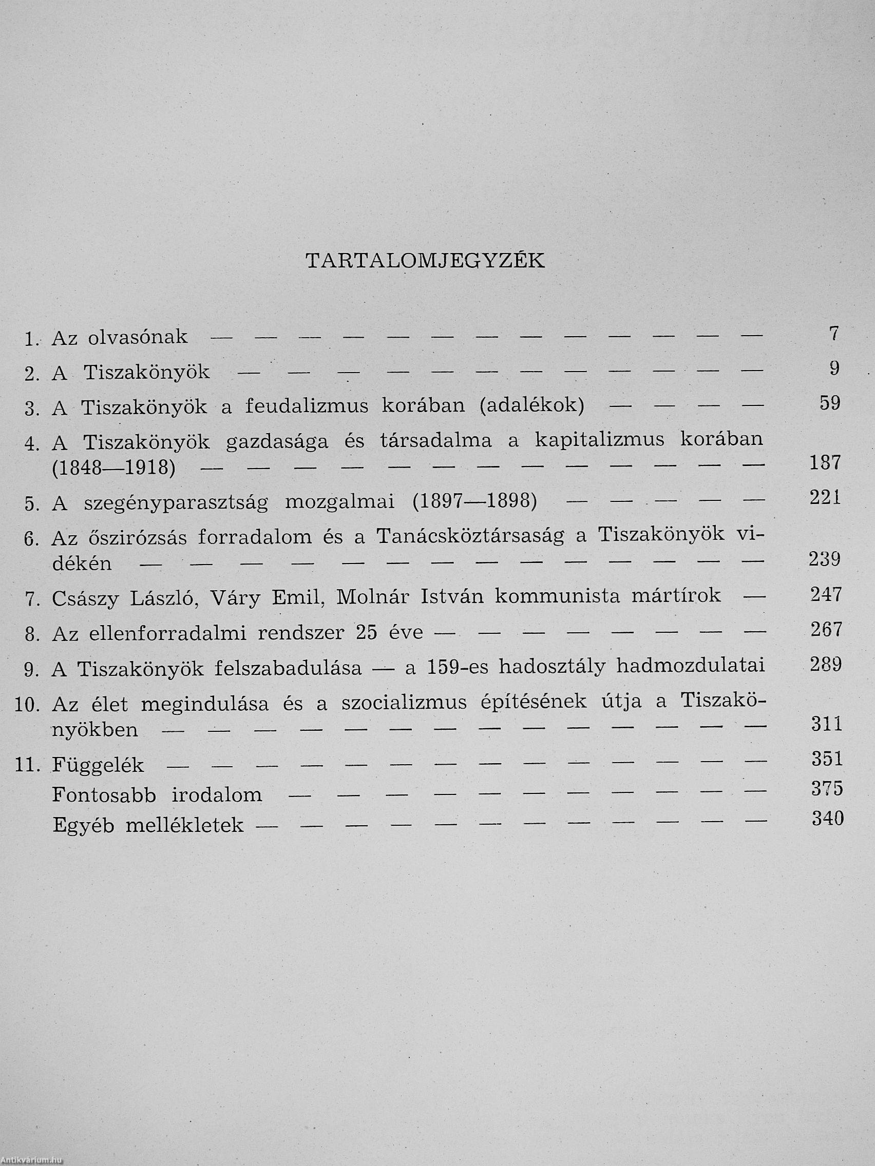 A TISZAKÖNYÖK TÖRTÉNELMÉHEZ