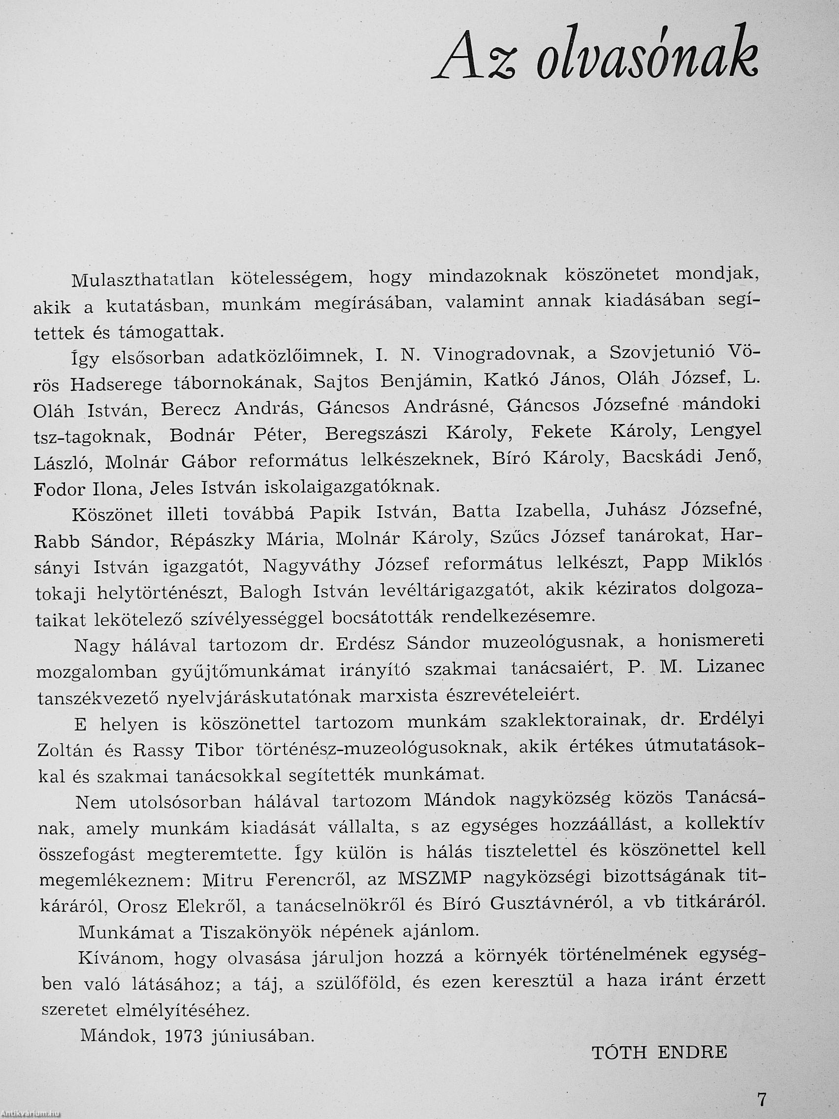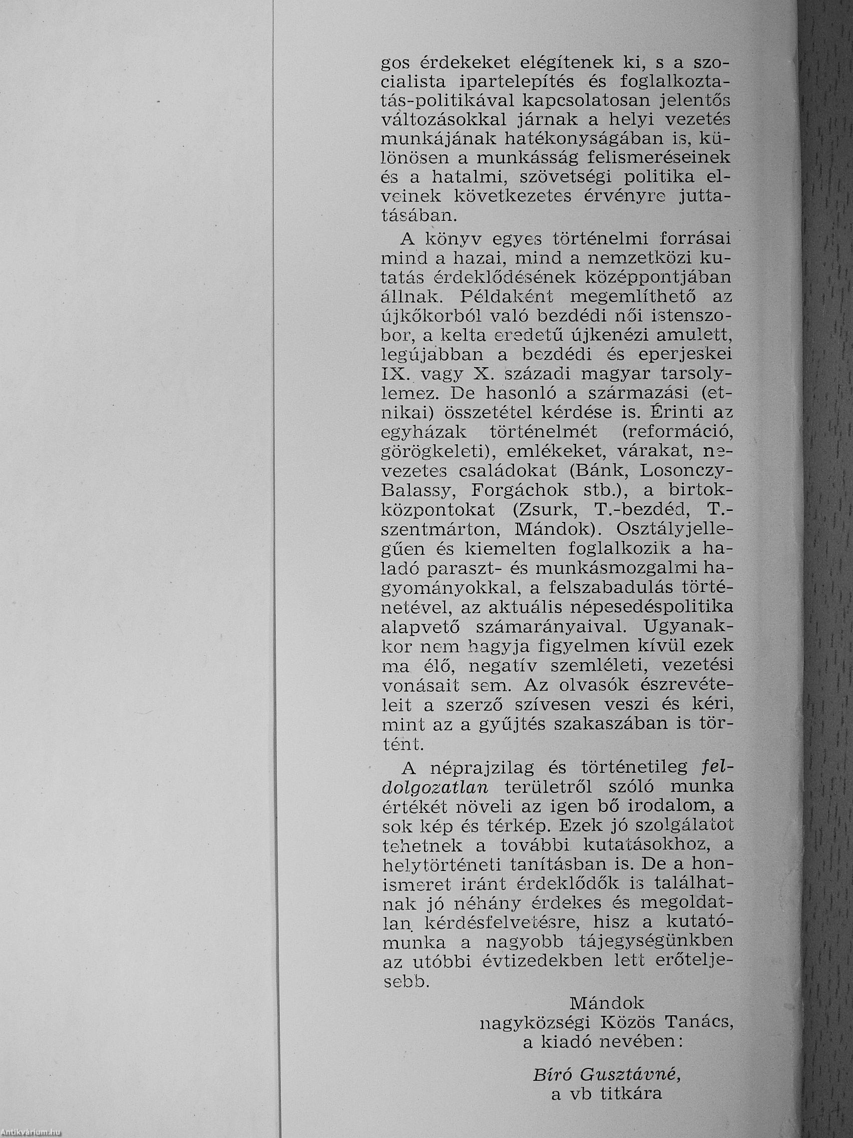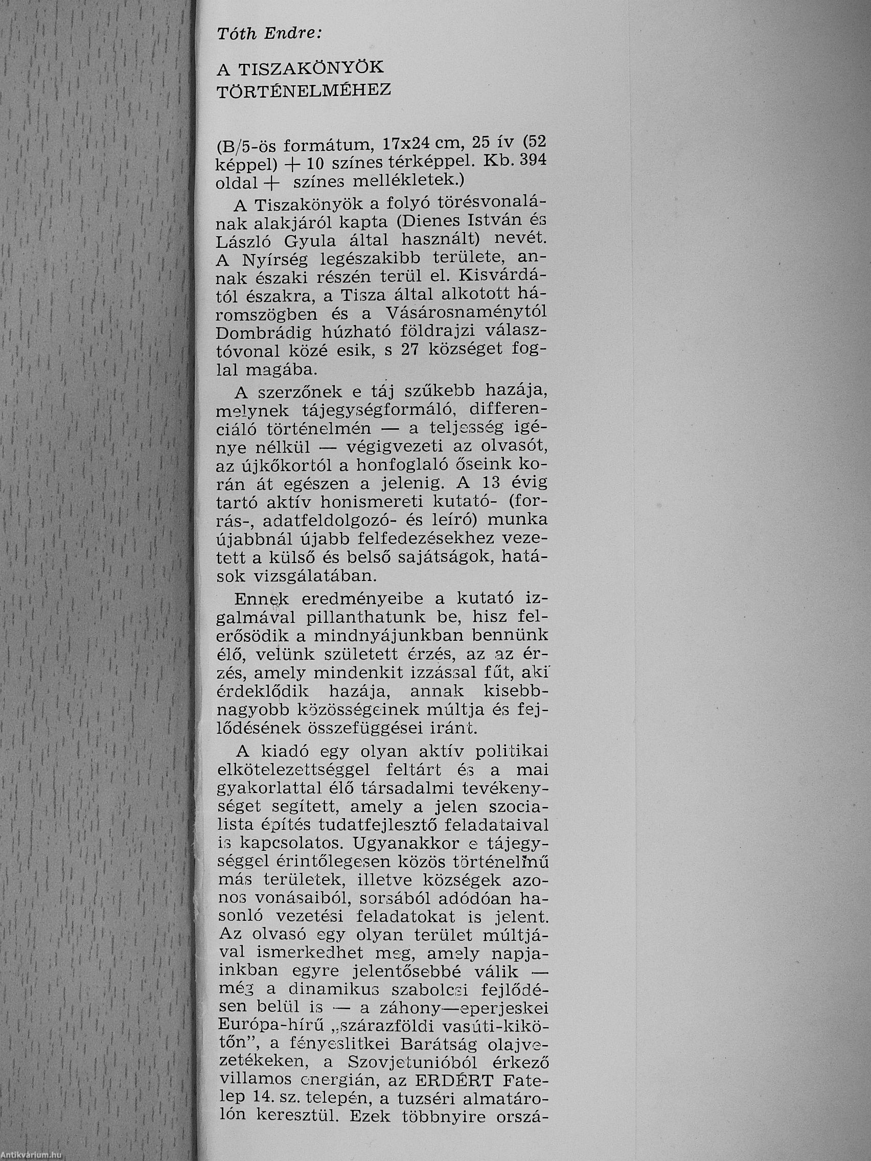 A kiadó egy olyan aktív politikai elkötelezettséggel feltárt és a mai gyakorlattal élő társadalmi tevékenységet segített, amely a jelen szocialista építés tudatfejlesztő feladataival i3 kapcsolatos. Ugyanakkor e tájegységgel érintőlegesen közös történeünű más területek, illetve községek azonos vonásaiból, sorsából adódóan hasonló vezetési feladatokat is jelent. Az olvasó egy olyan terület múltjával ismerkedhet meg, amsly napjainkban egyre jelentősebbé válik — még a dinamikus szabolcsi fejlődésen belül is — a záhony—eperjeskei Európa-hírű „szárazföldi vasúti-kikötőn", a fényeslitkei Barátság olajvezetékeken, a Szovjetunióból érkező villamos energián, az ÉRDÉRT Fatelep 14. sz. telepén, a tuzséri almatárolón keresztül. Ezek többnyire orszá-