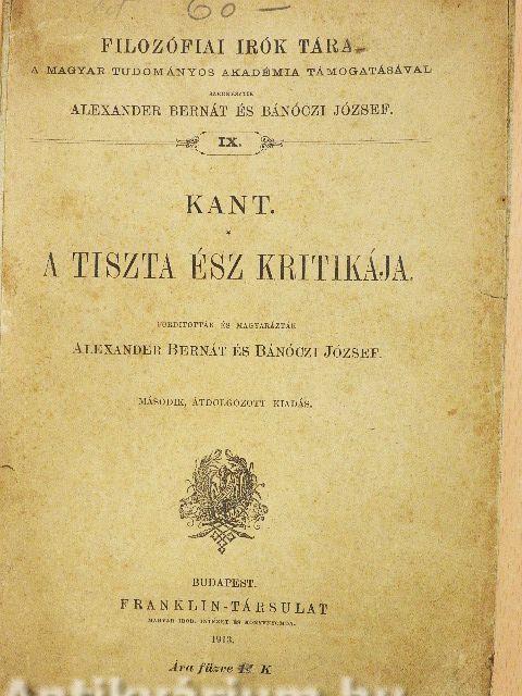 | A Tiszta Ész Kritikája (1787) | |