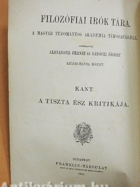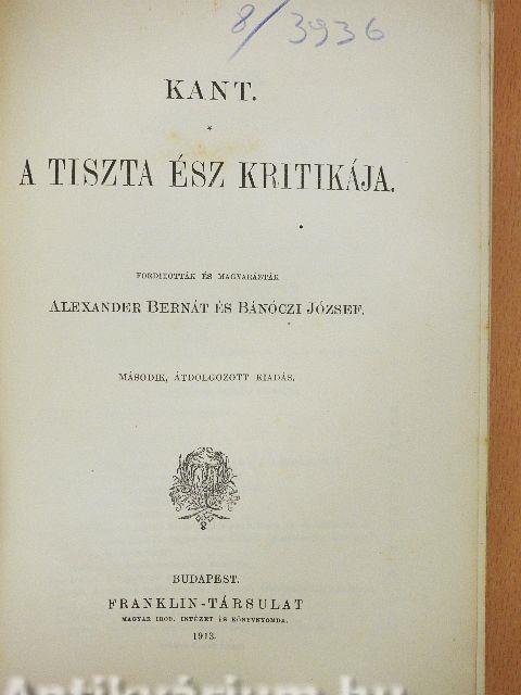 A Tiszta Ész Kritikájáról írta Alexander Bernát617